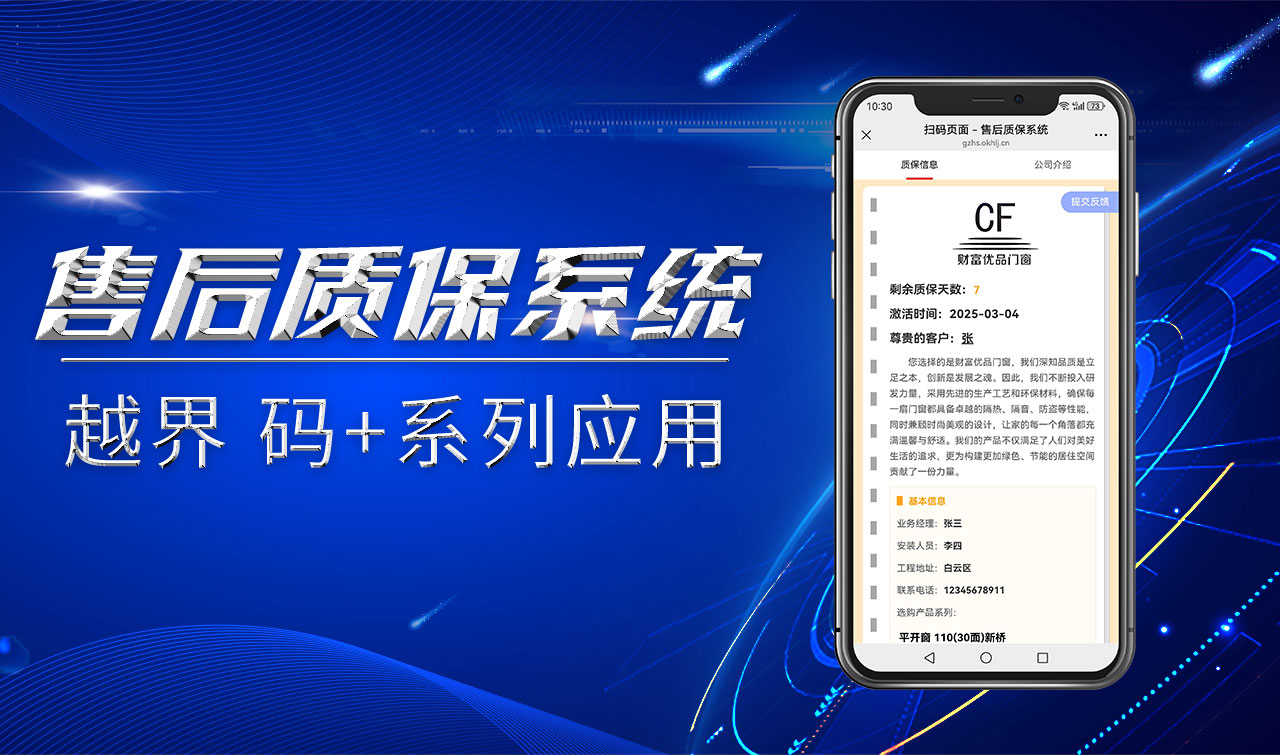 售后质保系统一物一码售后质保系统,为每一件产品分配独一无二的售后质保二维码标签,这个二维码内嵌有产品详细信息及质保服务内容,如产品型号、质保期限、使用说明、常见问题处理方法、图文参数等。... -