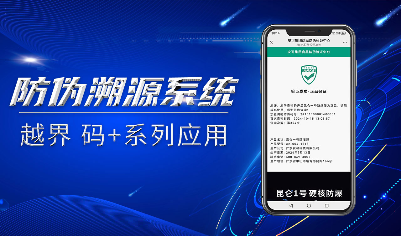 防伪溯源系统防伪溯源系统,为每个产品赋予独一无二的防伪标签,用户扫码可显示产品防伪信息、产品参数(品牌、名称、规格、执行标准、防伪编号、生产日期、图片内容等)、首次扫码时间、防伪查询次数、公司简介等。...